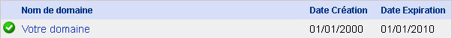 Dans le menu (à gauche) sous « Administration » Cliquez sur « Mes domaines », puis cliquez sur le nom de votre domaine :