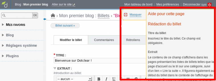La méthode helpBlock de la classe dcPage permet de créer automatiquement et surtout de formater l'onglet qui sera affiché sur la page administration de votre plugin (si elle existe).